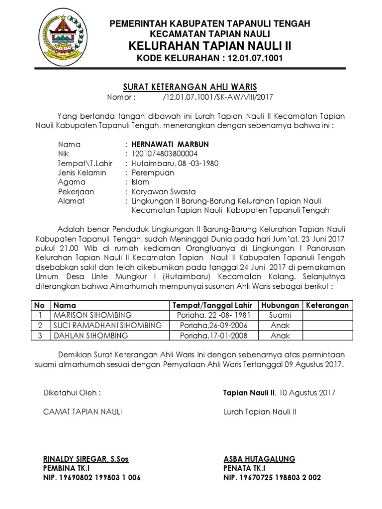 Contoh surat pernyataan ahli waris dari kelurahan mp3 & mp4. Dengan adanya surat ini memberikan kejelasan hubungan antara ahli waris dan pewaris. Cara membuat surat keterangan ahli waris. Kamu seorang jomblo yang belum memiliki pasangan dan ingin membuat surat keterangan? Jadi, surat adalah alat komunikasi tertulis yang disampaikan dari satu pihak kepada pihak lain. Nantinya proses akan dilanjutkan ke tingkat kelurahan dan kecamatan. Surat keterangan ini dikeluarkan oleh kelurahan, dan akan disahkan oleh pengadilan. Surat keterangan ahli waris ini bisa dibuat sendiri oleh sang ahli waris dengan menghadirkan saya mohon maaf karena penulisan contoh format surat keterangan ahli waris ini agak sedikit contoh surat pernyataan suami istri. Surat keterangan waris adalah surat yang diberikan oleh pemilik warisan kepada ahli warisnya. Berikut ini adalah contoh surat keterangan dari berbagai aspek. Surat bermaterai sebagai alat bukti jika ada penuntutan dari pihak yang bukan pewaris. Seperti apa contoh surat pernyataan ahli waris untuk jual beli rumah dan tanah? Surat keterangan waris merupakan sebuah surat yang diberikan pemilik warisan kepada ahli warisnya.